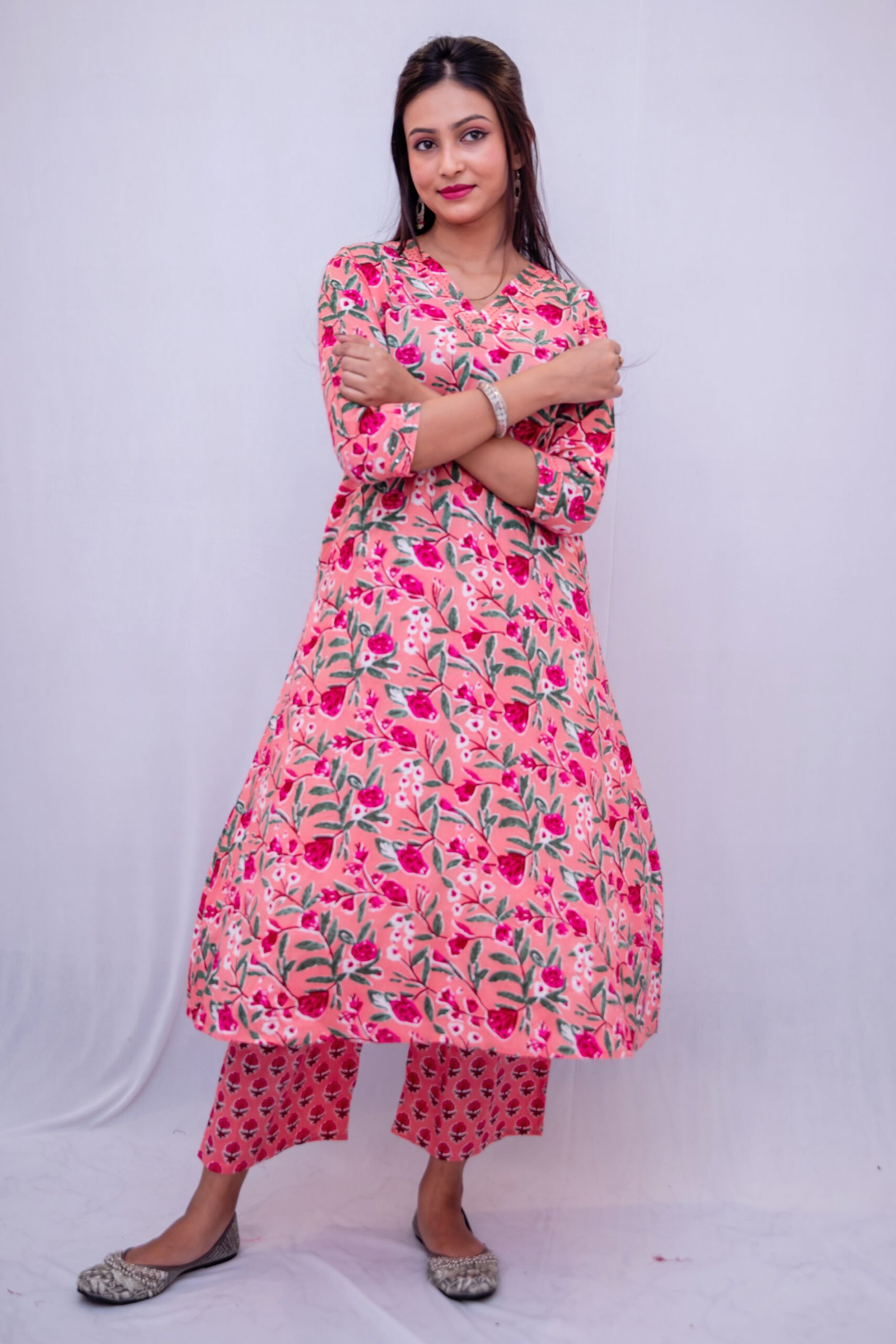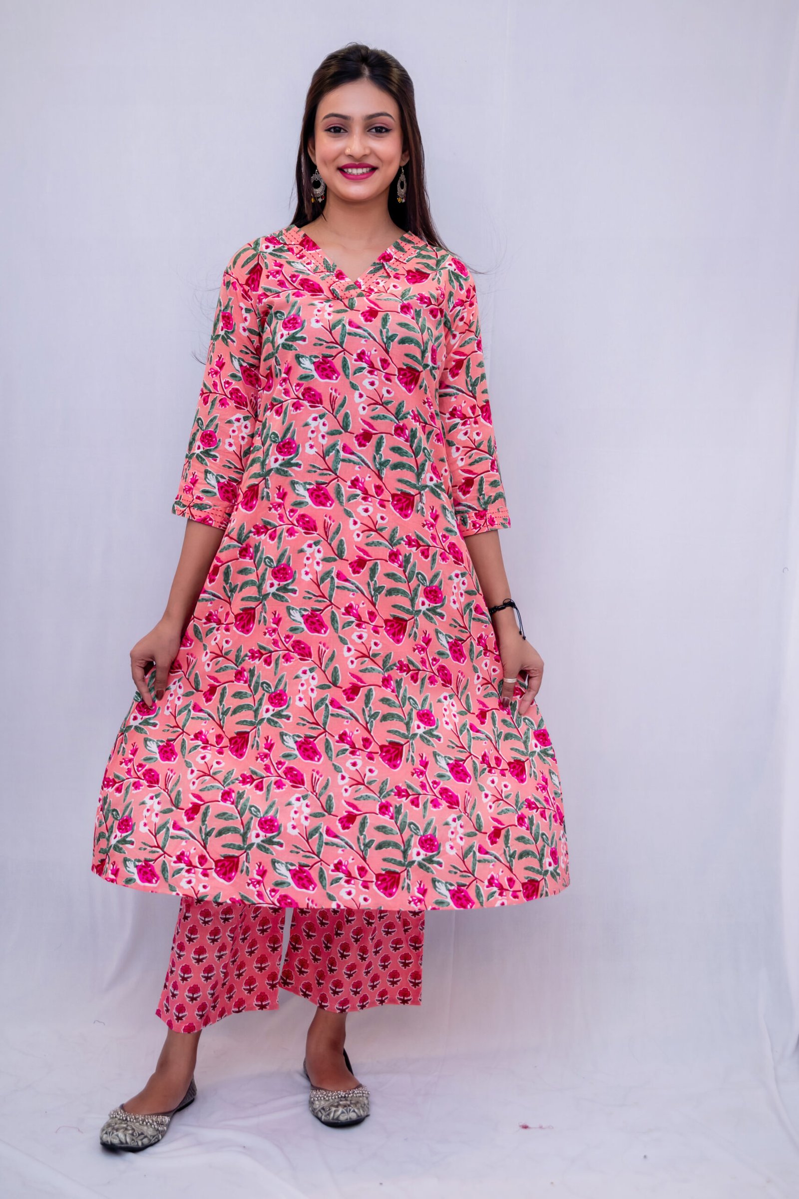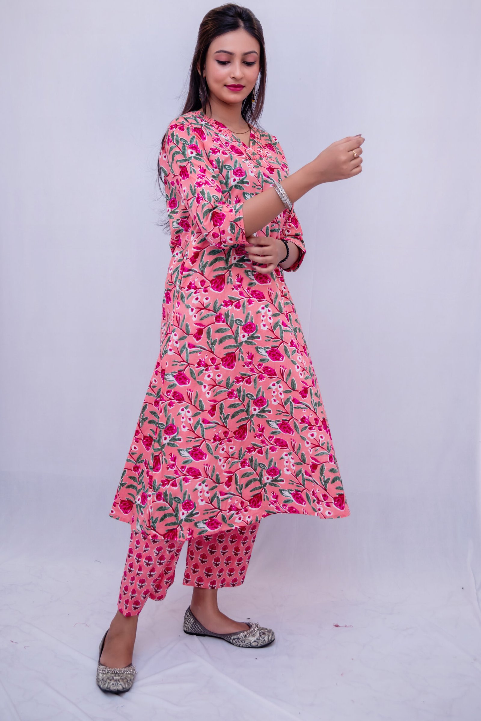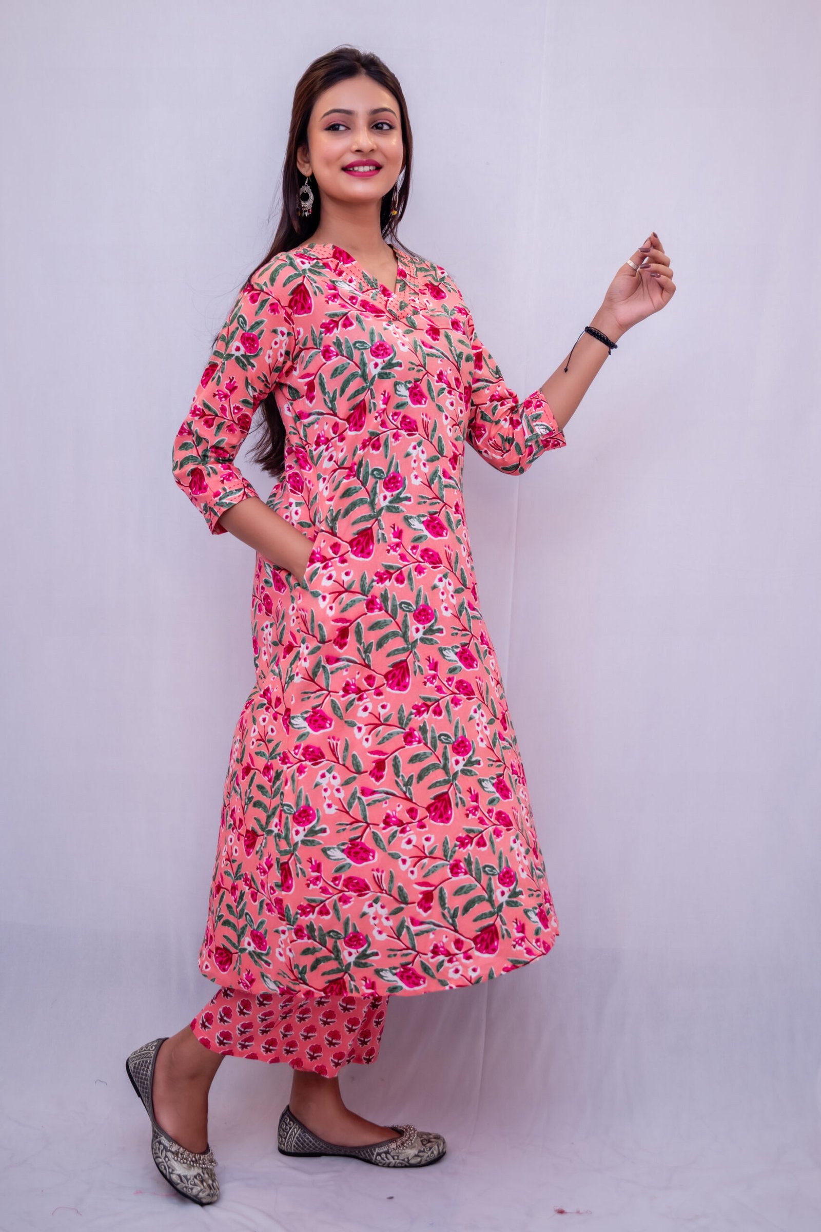 Bring charm and elegance to your everyday style with this beautifully designed pink floral printed kurti pant set. Made from premium quality fabric, this outfit offers a soft, breathable, and lightweight feel, making it ideal for all-day wear.