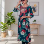 Paired with matching straight-fit pants, this outfit is ideal for women who love effortless style without compromising on comfort. Whether you’re heading to a family get-together, office, or casual day out, this kurta set keeps you looking elegant and confident.