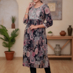 Made from soft, breathable fabric, this kurta ensures all-day comfort while maintaining a graceful drape. The three-quarter sleeves and flared silhouette provide a flattering fit, while the matching straight-fit pants complete the look with modern simplicity. Ideal for office wear, festive occasions, family gatherings, or casual outings, this kurta set blends tradition with everyday practicality.