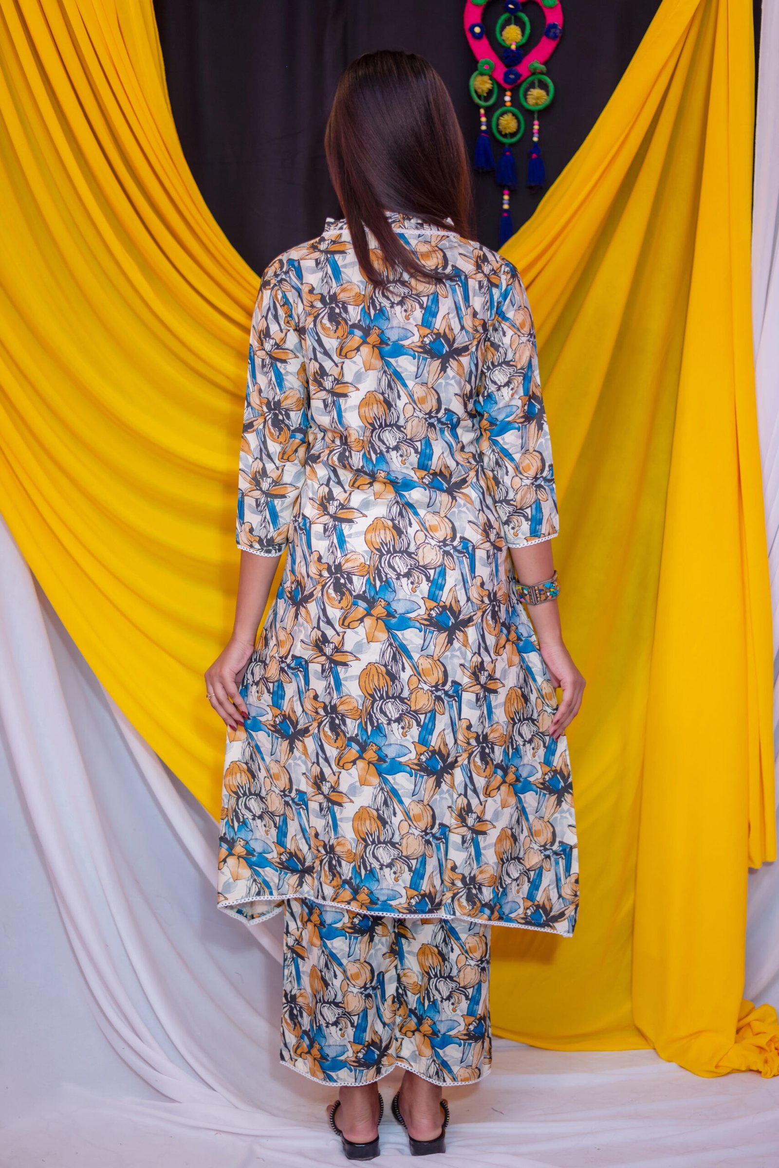 Add elegance to your ethnic collection with this beautifully designed Women’s Blue & Mustard Floral Printed Kurti. Crafted from premium quality breathable fabric, this kurti ensures maximum comfort while giving you a stylish and graceful look.