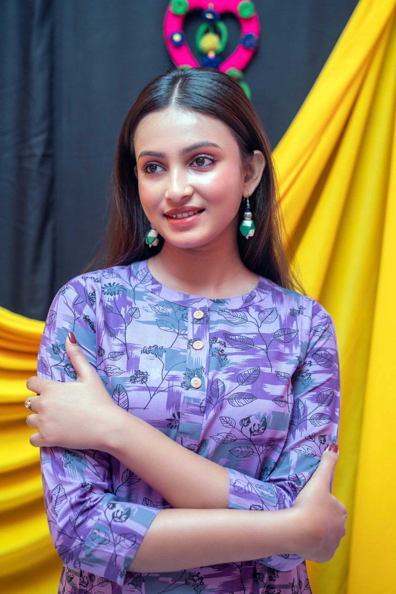 The stylish round neckline with front button detailing and 3/4th sleeves adds a graceful touch, making it perfect for casual outings, office wear, college, or festive gatherings. Pair it effortlessly with jeans, leggings, or palazzos to create a chic Indo-western look.